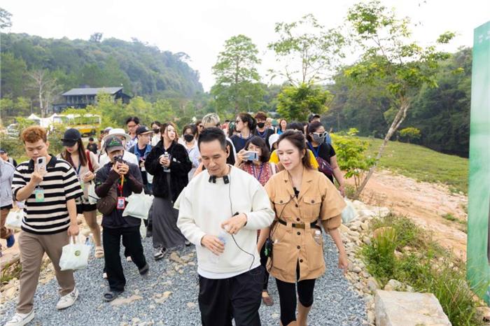 Lý Hải giới thiệu đến đoàn tham quan từng khu vực một, gây chú ý nhất là chỗ lều ngủ dành cho 120-150 thành viên đoàn phim trong nửa tháng ghi hình. Đạo diễn cho biết khu vực này không có khách sạn, gần nhất chỉ có homestay với sức chứa cỡ 20 người.