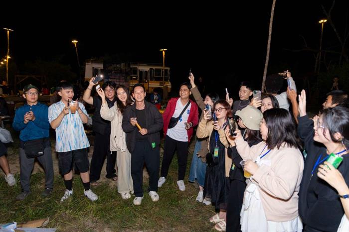 Lý Hải thú nhận anh vô cùng sốc khi thấy rất nhiều anh chị báo chí, TikToker đến buổi tham quan, thậm chí vượt qua số lượng dự liệu trước đó. “Tôi cứ sợ là xa quá, mà mọi người đang phải tham gia chiến dịch truyền thông dịp lễ tới nên sẽ không đến. Đại diện đoàn phim, tôi cảm ơn mọi người rất nhiều”, Lý Hải chân thành chia sẻ. Anh cũng tiết lộ rằng phim trường Lật Mặt 7 gắn với thiên nhiên, sẽ không phải resort 5 sao nhưng tại đây, tất cả mọi người đều được đối xử bình đẳng như gia đình. Đến chuyện ăn cơm đoàn thì từ đạo diễn, diễn viên đến ekip đều xếp hàng. “Mọi người đến đây sẽ được trải nghiệm ăn cơm đoàn xem khác bình thường thế nào. Tôi nghĩ nó sẽ… nhão và sống hơn một chút”, Lý Hải đùa.
