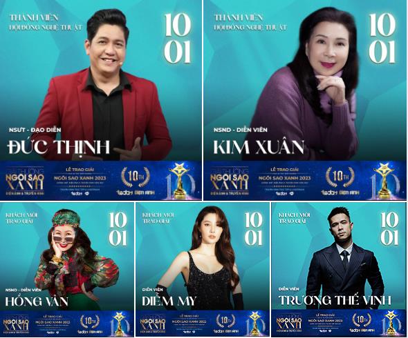 Và chỉ còn ít ngày nữa quý khán giả sẽ có cơ hội được chứng kiến trực tiếp khoảnh khắc nhận giải cũng như dành sự ủng hộ đặc biệt cho các nghệ sĩ và bộ phim mình yêu mến tại đêm gala trao giải Ngôi Sao Xanh 2023. Đảm nhận vai trò trao chiếc cúp Ngôi Sao Xanh đến những chủ nhân xứng tầm là các nghệ sĩ gạo cội trong nghề như: NSND Kim Xuân, NSND Hồng Vân, NSND Kim Cương, NSƯT Kim Tuyến, NSƯT – Đạo diễn Đức Thịnh, Diễn viên Diễm My 9X, Trương Thế Vinh,…. Đồng thời còn có sự góp mặt của những người đẹp được công chúng yêu mến như: Hoa hậu Lương Thùy Linh, Đoàn Thiên Ân, Bảo Ngọc, Mai Phương,… càng khiến sân khấu đêm gala trở nên lung linh hơn bao giờ hết.