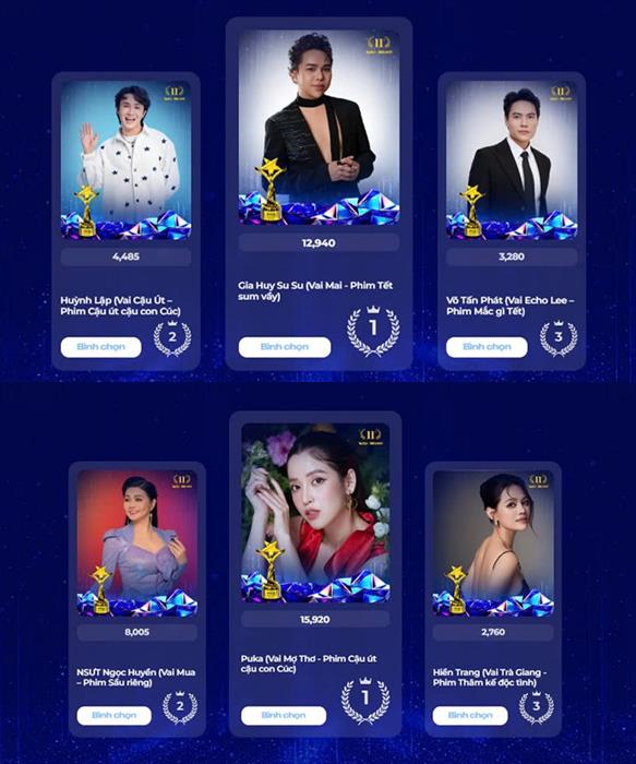 Kể từ lúc bắt đầu sàn đấu Không gian mạng tại Ngôi Sao Xanh 2024 cũng ghi nhận sự thi đấu nghiêm túc và quyết tâm ẵm cúp vàng từ nhiều đề cử nổi bật. Tuy chỉ mới kết thúc tuần tranh tài đầu tiên nhưng điểm số giữa top 1 và các vị trí còn lại trên bảng xếp đã có khoảng cách đáng kể. Gia Huy Su Su là cái tên gây bất ngờ nhất khi leo lên vị dẫn đầu bảng ‘Nam diễn viên được yêu thích nhất’ với 12.940 điểm nhờ vai diễn Mai trong phim Tết sum vầy. Vị trí số 1 trên bảng xếp hạng ‘Nữ diễn viên được yêu thích nhất’ thuộc về ‘mợ Thơ” – PuKa với 15.920 điểm. Tác phẩm Liên và Đạt có 4.745 điểm cũng tạm dẫn đầu top 3 ‘Phim hay nhất’ hạng mục Không gian mạng.
