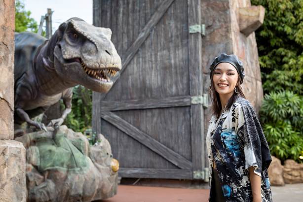 Châu Bùi “thả dáng” cực ngầu bên cạnh Khủng long bạo chúa Tyrannosaurus Rex