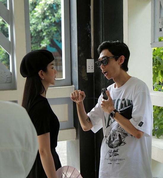 Hồng Thanh luôn cổ vũ cho DJ Mie trước mỗi cảnh quay.