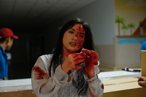 Trong loạt ảnh vừa được ekip sản xuất hé lộ, Phương Anh Đào xuất hiện với hình ảnh đầy máu me. Đây là hậu trường hóa trang cho 1 trong những phân đoạn ghê rợn, khốc liệt nhất bộ phim.