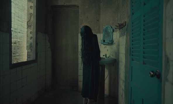 Vẫn với tông màu xanh, poster chính của phim truyền tải không khí rùng rợn pha bí ẩn bao trùm 5 nhân vật nữ. Nhân vật chính là Linh (Chi Pu) diện bộ áo đen, ánh mắt chất chứa cả sợ hãi, căm phẫn xen lẫn đau khổ. Cô gái trẻ cầm cây dùi chĩa thẳng vào cổ mình, như đang chịu sự chi phối của một thế lực bí ẩn.