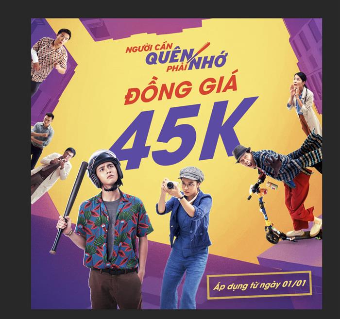 Bên cạnh đó, từ ngày 01.01.2021, NSX cũng như NPH của Người Cần Quên Phải Nhớ cũng áp dụng chương trình đồng giá 45,000 VND cho mỗi vé phim Người Cần Quên Phải Nhớ, với mong muốn cùng khán giả bước qua năm 2021 trong niềm hân hoan và quên đi năm cũ 2020 đầy biến động