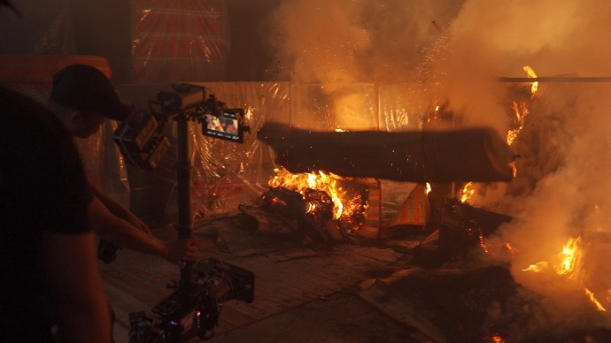 Lý Hải nói thêm: “Khi quay phim, không phải cháy một lần mà là quay đi quay lại nhiều lần. Điều đó có nghĩa là đoàn phim phải chất chiếu vào rồi đốt, có diễn viên diễn xuất trực tiếp trong đó. Khi lên phim, khán giả có thể thấy cảnh quay rất ngắn. Nhưng mục đích của Lý Hải là làm sao có những set hình thật tốt và chân thật nhất”.