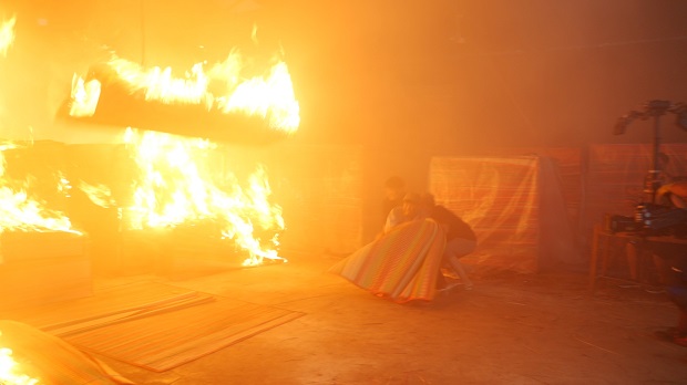 Trước khi thực hiện, Lý Hải đã phải làm tâm lý và tập luyện nhiều lần trước cho mọi người. Đồng thời, anh còn tính toán kỹ lưỡng nhiều thứ vì trong nhà kho khi lửa cháy không chỉ có diễn viên mà còn là thành viên trong đoàn phim, máy móc thiết bị hỗ trợ ghi hình. Đoàn phim đã phải huy động hai xe cứu hỏa túc trực để đề phòng sự cố.