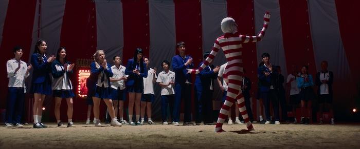 Hơn nữa, đoạn clip trên còn khơi gợi tính tò mò khi lồng ghép yếu tố quỷ dị xuyên suốt. Việc đám hề thoắt ẩn thoắt hiện, dễ dàng hạ sát “con mồi” chỉ bằng cái phẩy tay đằng xa khiến khán giả hoang mang, không biết rốt cuộc ai đã bày ra trò chơi chết chóc đó: lũ tội phạm biến thái, tổ chức tà giáo hay thế lực siêu nhiên.