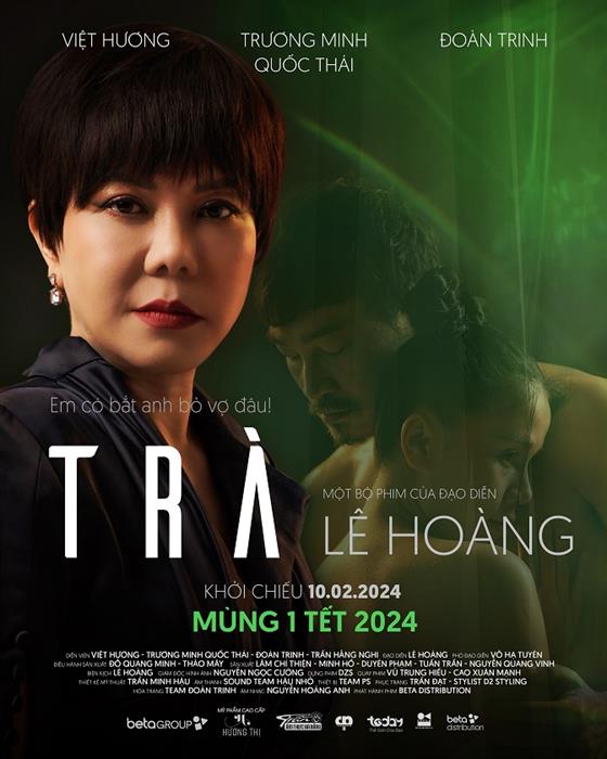 Trong Poster chính thức của phim điện ảnh Trà, Việt Hương gây tò mò khi xuất hiện ở vị trí spotlight. Hoàn toàn khác biệt với những hình ảnh cơ cực, chân chất trong các tác phẩm phim ảnh trước đó, nữ nghệ sĩ trở lại trong một hình tượng đầy mới lạ: Một quý bà “chính thất” giàu có, quyền lực. Dòng tagline “sặc mùi” kịch tính – “Em có bắt anh bỏ vợ đâu” cùng hình ảnh đôi nhân tình – NSƯT Trương Minh Quốc Thái – Đoàn Trinh ẩn hiện phía sau, phim điện ảnh Trà hứa hẹn sẽ mang đến màn ảnh rộng dịp Tết một “vũ trụ drama”.