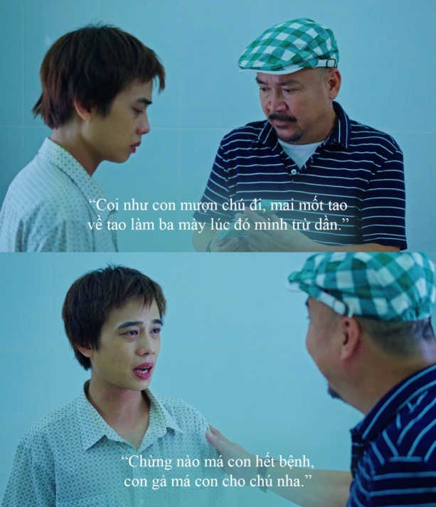 Chỉ cần nhìn thấy điệu bộ bất bình thường của bà Hồng là Đại Kê đã đoán được tâm tư của bà ngay. Như lúc mới sáng ra đã bị mẹ quát vô cớ, thay vì giận, Đại Kê đã đoán mẹ chưa ăn sáng nên mệt. Cậu nhóc nói: “Má đói sau má không nói, con đi mua đồ cho má ăn tự nhiên la con. Ăn phở nha?”. Trong một lần sốt ruột khi mẹ đau chân nhưng không cho đỡ, Đại Kê bực mình nói:“Má làm gì má cũng phải thương cái đầu gối của má chứ, cái chân chịu cái mình không nổi mà cứ sĩ diện hoài”