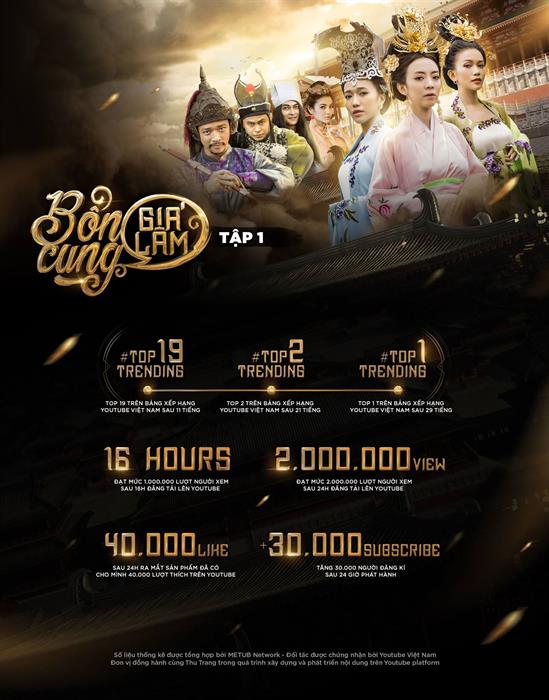 Theo số liệu được cung cấp bởi METUB Network – đơn vị quản lý trên Youtube Thu Trang Official: Sau 11 tiếng, tập 1 đã lọt TOP 19 video thịnh hành trên Youtube, TOP 2 sau 21 tiếng và vào TOP 1 sau 29 tiếng lên sóng, Chỉ sau 16 tiếng đăng tải đã cán mốc 1 triệu lượt xem, Và sau 24 tiếng đã có 2 triệu lượt xem, với hơn 40,000 lượt thích và kênh tăng trường hơn 30,000 lượt người theo dõi kênh.