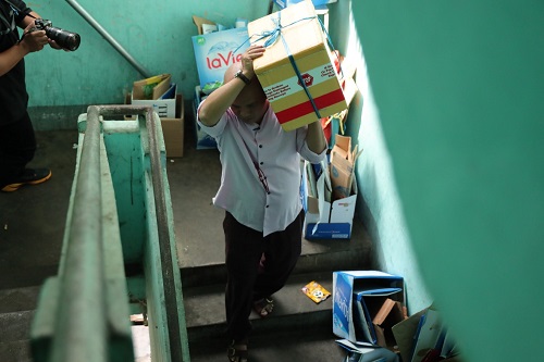 Cụ Huỳnh tên thật là Nguyễn Thị Huỳnh (71 tuổi), cụ Huỳnh kể “Bà bán xôi ở ngoài đó để nuôi gia đình. Bà ngủ ít lắm con, có khi bà dậy từ 2 giờ sáng” để đi chợ sớm chuẩn bị nguyên liệu, dọn đồ, khiêng đồ lên xuống… “Suốt 16 năm không nghỉ ngày nào”. Gánh xôi ấy không chỉ là nguồn thu nhập chính nuôi sống gia đình mà còn lo tiền thuốc cho chồng, tiền đóng học cho cháu. “Cả nhà có ai làm ra tiền đâu con, có mình bà gánh vác hết trong ngoài” cụ Huỳnh bộc bạch. Được biết, trước đây chồng cụ Huỳnh từng là giáo sư có tiếng nhưng từ khi bị tai biến nằm liệt giường đến nay đã 20 năm. Ngần ấy năm, cụ Huỳnh vừa bán xôi vừa chăm chồng, cụ còn phải nuôi hai người con sức khỏe kém và đứa cháu đang tuổi ăn tuổi học.