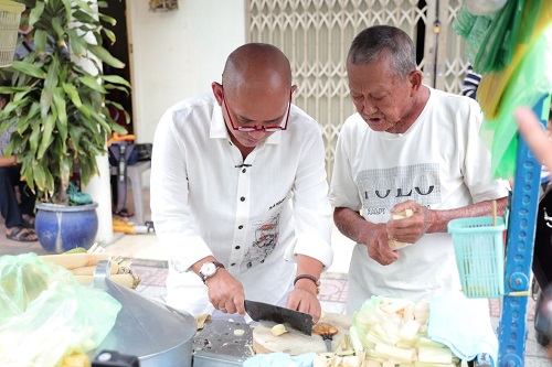 Từ sáng sớm, vợ chồng cụ Định đã lọ mọ dậy róc mía. Tiếng lọc cọc chặt mía, chuẩn bị cho gánh hàng đã trở thành âm thanh quen thuộc của khu phố nơi đây. Hơn nửa thế kỷ, cụ Định gắn bó cùng xe mía, rong ruổi trên nhiều con đường, tuyến phố đã trở thành một phần ký ức tươi đẹp của nhiều người. Hình ảnh cụ ông tóc ngả màu sương, làn da đen sạm vì nắng gió, sức khỏe không còn được như xưa nhưng đôi bàn tay chai sạn ấy vẫn thoăn thoắt, điệu nghệ róc mía, chặt những khúc mía đều tăm tắp không khác gì một người nghệ sĩ tài hoa với con dao sắc bén. Trong khi cụ Định chặt mía, cụ Nuôi sẽ chầm chậm bỏ từng miếng mía vào bịch để bán cho khách. Nhìn những bịch mía, bịch nào bịch nấy cũng được cụ bà nhét chặt cứng, căng đét vì sợ ít, ta càng cảm mến hơn tính hào sảng của vợ chồng cụ.