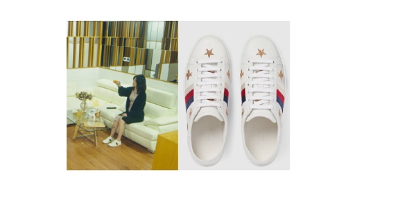 Từ tập 2 trở đi, khi hồn An Tư nhập vào thân xác, Khánh Tiên ương ngạnh, kiêu kỳ bỗng trở nên hiền dịu, dễ thương. Trang phục vì thế cũng giản dị đi vài phần. Tuy nhiên do xuất thân là một ái nữ, dù chỉ diện váy suông đơn sắc và khoác blazer len, cô vẫn ghi điểm với đôi sneaker Gucci Bee & Stars có giá 790 USD (hơn 18 triệu đồng).