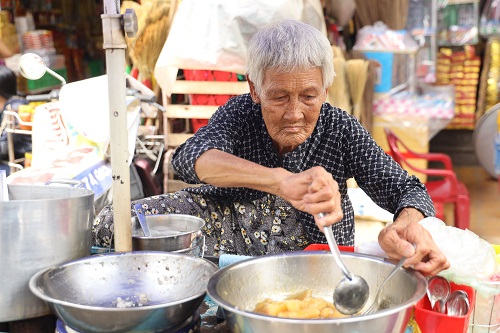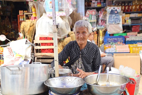Để kể về những gánh hàng rong mang đậm dấu ấn thời gian ở thành phố Mỹ Tho thì chắc hẳn chúng ta không thể không nhắc đến xe chè 75 năm tuổi của cụ Bùi Thị Be (88 tuổi). Cụ Be được xem như là huyền thoại bán chè ở Mỹ Tho bởi cụ đã gắn bó với xe chè của mình gần tròn một thế kỷ. Người dân nơi đây thường gọi cụ với cái tên thân thuộc là cụ Ba chè.