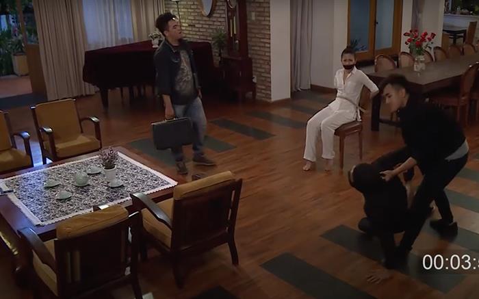 Sau đó, chúng vô cùng giận dữ khi phát hiện ra chiếc vali đã bị tráo. Trong lúc này, người chồng đang ra sức tháo dây trói giải cứu cho vợ nhưng không kịp, anh đành phải núp vào trong để chờ cơ hội khác. Tuy nhiên với kinh nghiệm, bọn tội phạm đã lục soát và nhanh chóng bắt được anh chồng. Chúng đã dùng vợ để uy hiếp anh phải quay trở lại công ty để lấy chiếc vali chứa ma tuý.