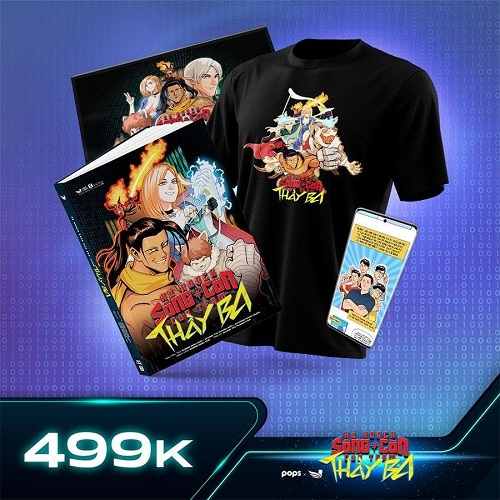 Với gói cao cấp nhất, fan sẽ nhận trọn combo 4 vật phẩm siêu độc đáo, bao gồm: Áo thun cực ngầu in hình đầy đủ team SBTC phiên bản truyện tranh cực xịn, Bản sách giấy, Truyện thầy giáo Ba bản webtoon (không censor), 01 Digital poster chất lượng 4K dành cho màn hình desktop và 01 Digital poster phiên bản mobile.
