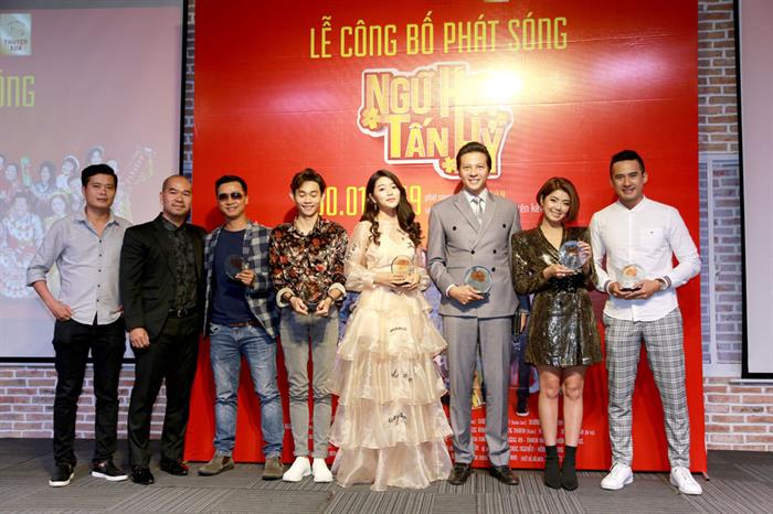 Tintuc - Sau thời gian dài “lăn xả” trên phim trường, ê-kíp phim hài Tết Ngũ Hợi Tấn Hỷ vừa có buổi họp báo công bố phát sóng tại tòa nhà Dreamplex.