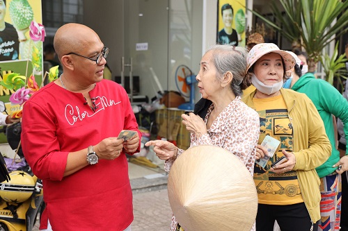 Buổi bán hàng bắt đầu với không khí nhộn nhịp, có nhiều khách hàng đến từ sớm để xếp hàng mua kẹo ủng hộ chú. Ngoài những vị khách đến mua kẹo ủng hộ thì còn có những mạnh thường quân đến chỉ đơn giản để ủng hộ chú mà không lấy kẹo hay chong chóng. Nhận được tình cảm yêu quý và sự ủng hộ của bà con, chú Năm không giấu được niềm vui trên khuôn mặt.
