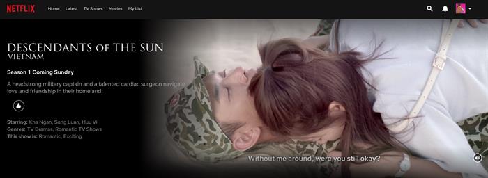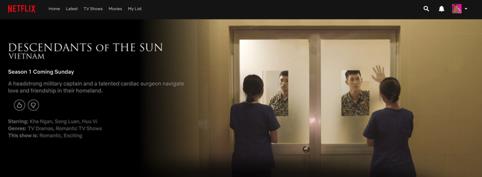 Hậu duệ mặt trời Việt Nam là bộ phim truyền hình dài tập đầu tiên của Việt Nam được mua bản quyền để phát sóng trên nền tảng xem phim trực tuyến Netflix. Bộ phim sẽ bắt đầu lên sóng từ ngày 01/09/2019. Khác với phiên bản 48 tập 30 phút được phát sóng tại các hệ thống xem phim trực tuyến trước đây, phiên bản Hậu duệ mặt trời Việt Nam chiếu trên Netflix sẽ gồm 24 tập mỗi tập 60 phút.