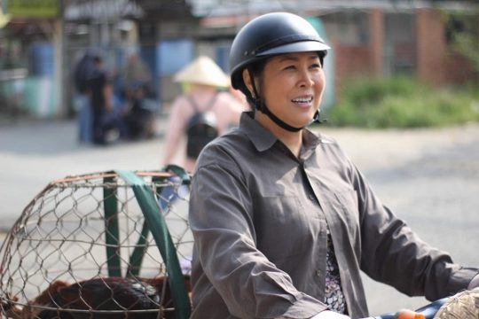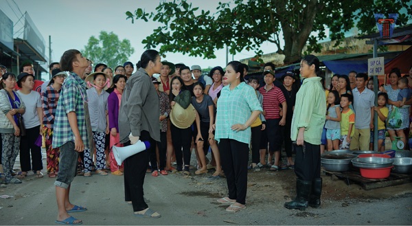 Hai phụ huynh khẩu chiến gay gắt. Lê Giang (áo xanh) trong vai bà chủ sạp cá