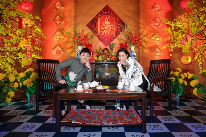 Ngoài những tiết mục được đầu tư hoành tráng trên sân khấu, phần dẫn dắt chương trình đến từ 2 MC thông thái và duyên dáng Trấn Thành và Hồ Ngọc Hà luôn là một phần không thể thiếu trong chương trình. Những thông tin hữu ích, những chuyện vui ngày Tết được chia sẻ qua sự dẫn dắt khéo léo và tung hứng đầy ăn ý từ 2 MC Trấn Thành và Hồ Ngọc Hà luôn khiến khán giả bật cười và cuốn hút mỗi khi lắng nghe. Cả 2 còn được chương trình dựng lên khung cảnh đầy ấm cúng và thân mật với những cây mai, mâm ngũ quả, bàn ghế gỗ, bánh mứt mang đậm không khí Tết trong nhà.