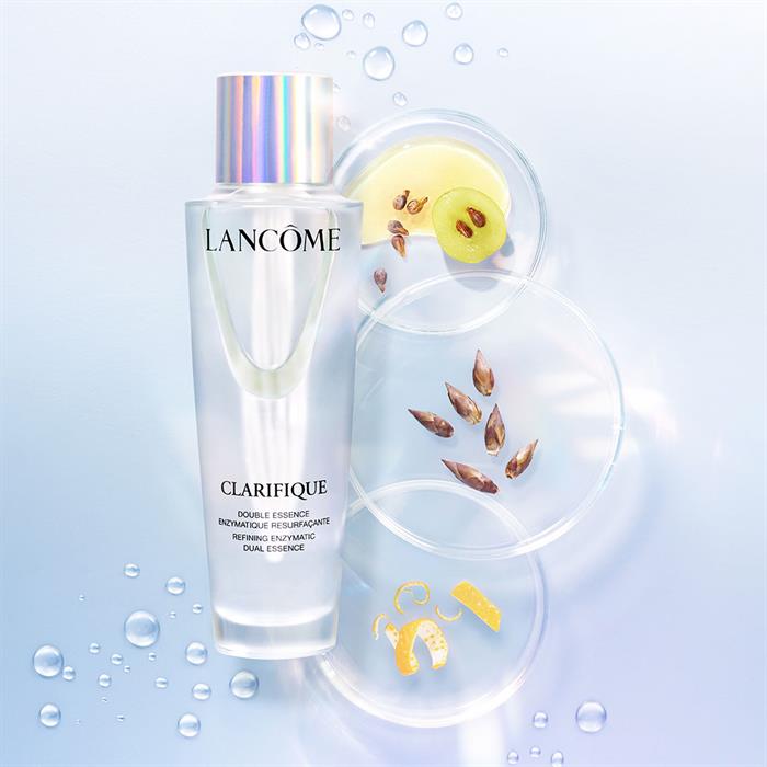 Với công nghệ cải tiến vượt trội, nước thần kép Clarifique cho hiệu quả vượt bậc về một làn da mềm mịn và được cấp ẩm sâu hơn chỉ sau lần đầu tiên sử dụng. Theo khảo sát trên người sử dụng sản phẩm, 87% phụ nữ cảm nhận làn da sáng trong hơn chỉ sau một tuần, 43% có làn da căng mịn, 24% da đều màu hơn và 13% có lỗ chân lông thu nhỏ hơn, sản phẩm giúp làn da bật tông, sáng trong căng mịn chỉ trong 4 tuần sử dụng. Ngoài ra, vỏ sản phẩm được làm từ vật liệu thân thiện với môi trường, với 40% thủy tinh tái chế và hoàn toàn có thể tái chế sau khi sử dụng.