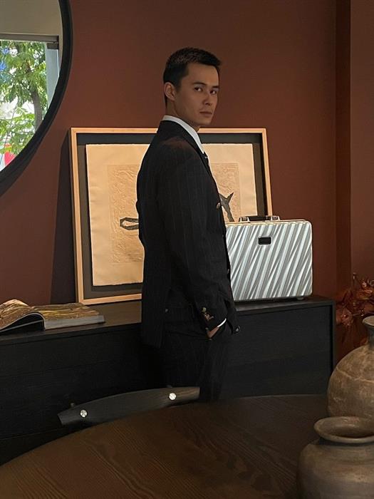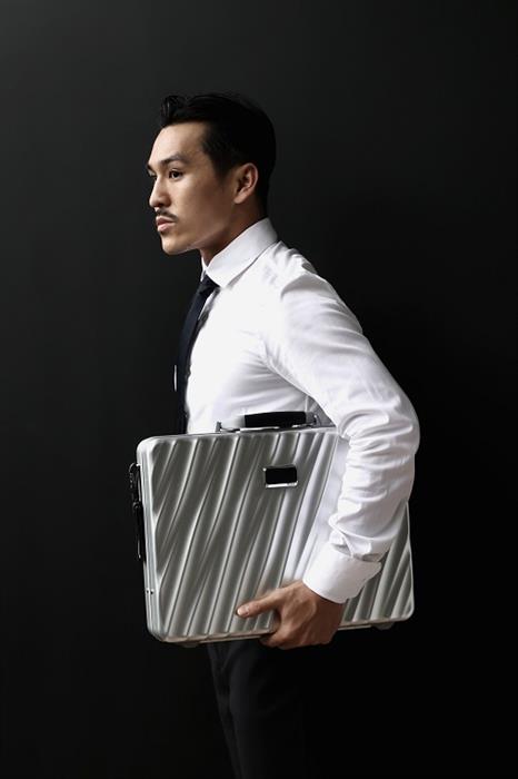 Chọn tông đen trắng hoài cổ, Thiên Minh hóa quý ông điềm đạm, quyến rũ cùng mẫu cặp xách – briefcase 19D của TUMI. Cách phối sơ mi trắng cùng cà vạt đen khá cổ điển, trong tay là chiếc cặp xách ánh bạc, đem đến cho Thiên Minh vẻ ngoài của một doanh nhân đương đại.