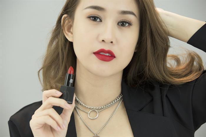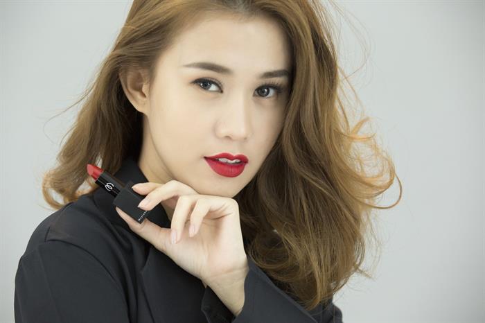 Ngọc Thảo cũng không quên màu 705 Cherry Wine, cô mang đến nét đẹp tinh tế, hút hồn bởi sự quyến rũ toát lên từ bờ môi. Cùng biểu cảm nhiều cảm xúc của một diễn viên, Ngọc Thảo hoàn toàn biến hóa với màu sắc này.