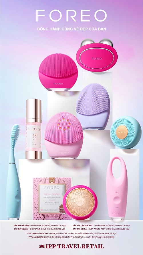 Tintuc - Thương hiệu máy rửa mặt cao cấp đến từ Thụy Điển FOREO chính là thành viên mới trong công ty IPP Travel Retail của doanh nhân Phillip Nguyễn. Các sản phẩm cực hot này sẽ chính thức được chào bán trên thị trường vào ngày 29/1/2021 với 6 điểm bán trên cả nước.