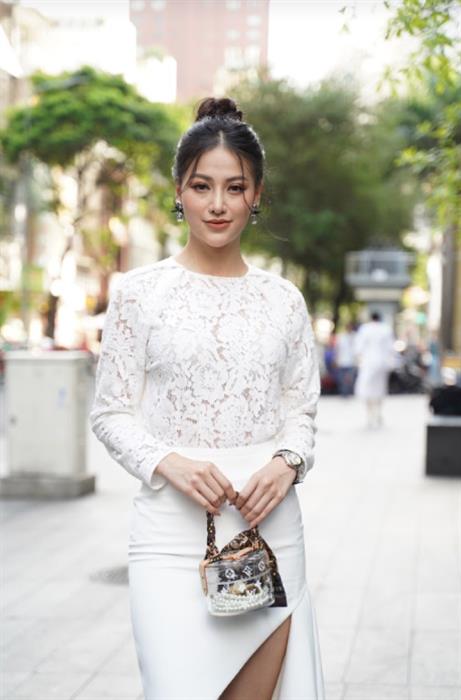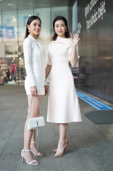 Nàng hậu 18 Mỹ Linh chọn mang theo chiếc túi xách YSL trắng cùng tông để đi gặp chị em