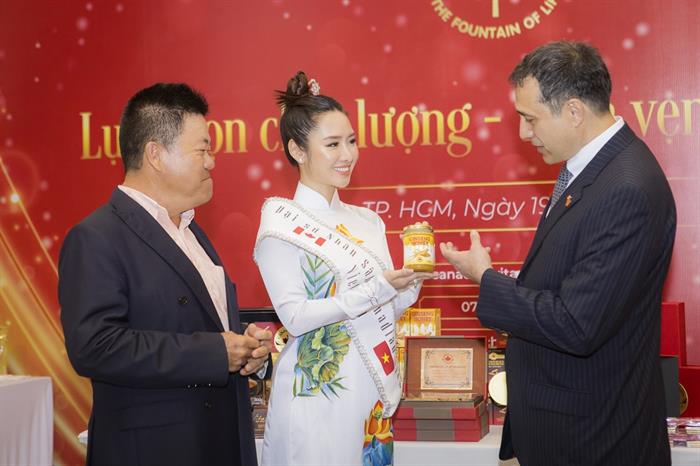 Đại sứ thương hiệu Canadian Vita tại Việt Nam – Hoa hậu Ngọc Anh Anh cũng có mặt tại sự kiện. Nàng hậu chia sẻ vì đã có cơ hội trải nghiệm, nhận thấy và tin tưởng vào chất lượng của nhân sâm Canadian Vita, cô mong muốn mình có thể góp phần lan tỏa, mang sản phẩm này đến gần với nhiều người tiêu dùng hơn nữa. Đồng hành cùng hoa hậu Ngọc Anh Anh còn có sự xuất hiện của nam ca sĩ – MC Nam Hee, MC Thanh Thanh Huyền, Ngọc Duy (nhóm nhạc The Wing), Hoa hậu Mi Mi…