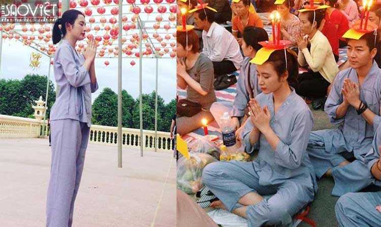 (Tapchisaoviet) Không mặc hở hang như mọi lần, Angela Phương Trinh chọn áo tràng cùng mẹ và em gái thành tâm đi lễ chùa khiến