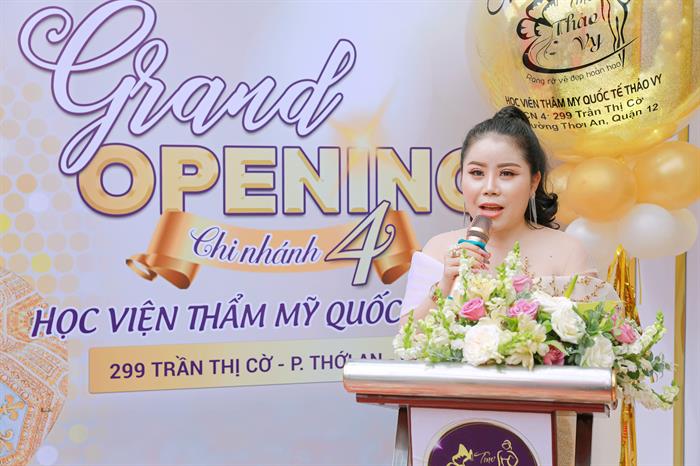 Tại buổi lễ khai trương, Tổng Giám Đốc Thảo Vy đã phát biểu và khằng định: “Sau 18 năm hoạt động, bằng tất cả tình yêu thương của quý khách hàng, bằng sự nổ lực phấn đấu nghiêm túc với ngành làm đẹp. Ngay hôm nay, công ty chúng tôi vô cùng vui mừng vì sự nổ lực đó đã được đền đáp. Khánh thành chi nhánh 4 với quy mô và tầm cỡ đào tạo đạt chuẩn quốc tế là 1 trong những đam mê mãnh liệt của tôi. Tôi luôn mong muốn có thể 1 phần nào đó giúp cho các em học viên sẽ có 1 nơi học tập tôt nhất có thể cả về chất lượng đào tạo lẫn cơ sở hạ tầng mà chi phí lại tương đối phù hợp với mọi hoàn cảnh.