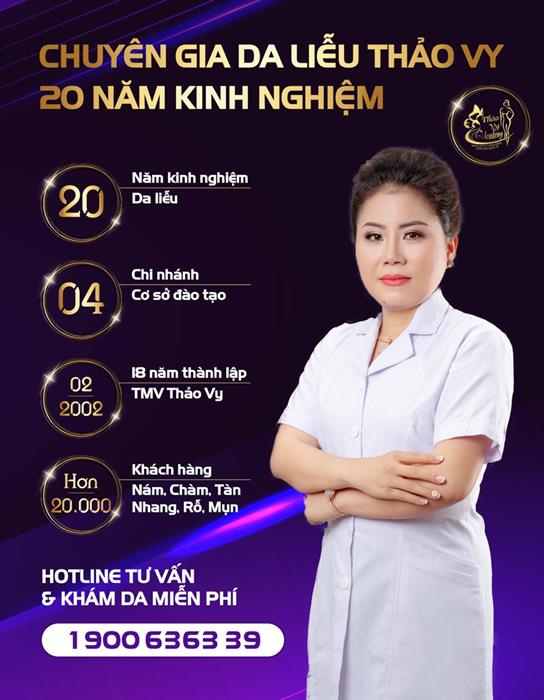 Đặc biệt, học viên học tập tại Học viện Thẩm mỹ Quốc tế Thảo Vy sẽ được đào tạo, giảng dạy bởi đội ngũ giảng viên dồi dào kinh nghiệm. Chuyên gia gia liễu Thảo Vy – với 20 năm kinh nghiệm trong lĩnh vực thẩm mỹ cùng những thành tích nổi bật: 18 năm điều hành TMV Thảo Vy, 4 cơ sở, chi nhánh đào tạo, hơn 20.000 khánh hàng nám, chàm đã được điều trị sẽ trực tiếp tham gia giảng dạy, đào tạo.