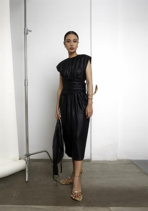 Đồng thời, loạt phụ kiện ánh kim bắt mắt vừa làm nổi bật bộ trang sức, vừa tạo nên điểm nhấn thú vị cho set đồ màu đen quyền lực. Đôi bông tai kích cỡ lớn không khiến set đồ trở nên rườm rà mà tạo nên điểm cân bằng và làm tổng thể bộ trang phục hài hóa, hút mắt hơn.