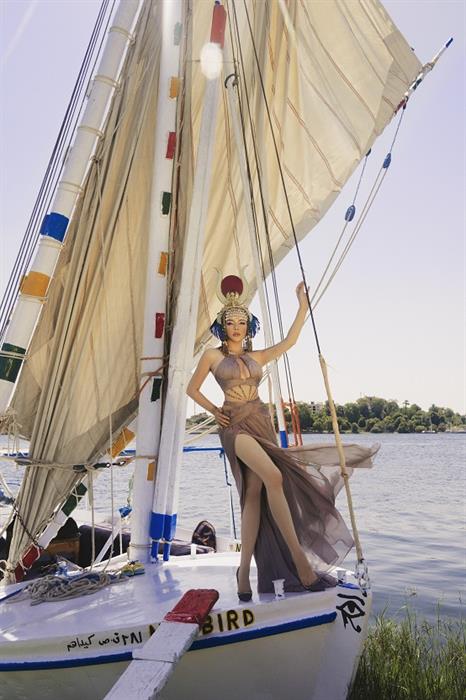 Du ngoạn dọc sông Nile là một điều thú vị. Được trải nghiệm, rung động bởi vẻ đẹp thanh bình hoang sơ và quyến rũ của phong cảnh hai bên bờ, bởi sự vĩ đại của hàng chục công trình kiến trúc. Dọc dòng sông Nin có rất nhiều cảnh đẹp, đây là dòng sông huyền thoại chứa những bí ẩn nhân loại. Lý Nhã Kỳ và ekip đã đi đến những nơi ít du khách để giới thiệu những hình ảnh rất đẹp khác ở Ai Cập ngoài những di tích nổi tiếng. Felucca là thuyền thủ công, khi chụp rất cực. Phải giữ thuyền lại thì cần rất nhiều người giữ cánh buồm, rất may mắn khi chụp bộ hình này thì người dân địa phương Ai Cập đã phụ giữ cánh buồm để thuyền dừng lại giúp ê-kíp có những shoot hình đẹp.