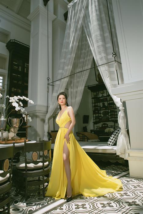 Hoa hậu, ca sĩ, doanh nhân Đinh Hiền Anh là “nàng thơ” của NTK Hoàng Hải, chính trang phục đầm dạ hội của Hoàng Hải đã giúp chị đăng quang ngôi vị Hoa hậu Quý Bà Doanh nhân Thế giới tại Moscow 2017.