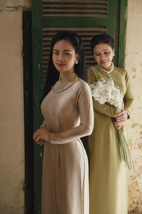 Trong loạt ảnh, mẹ con Dương Hoàng Yến cùng diện áo dài trắng, đeo kiềng bạc, và trang điểm làm tóc chuẩn cô gái Hà Nội. Chung 1 khung hình, ai cũng nhầm tưởng hai mẹ con là hai chị em vì nhan sắc quá hack tuổi.