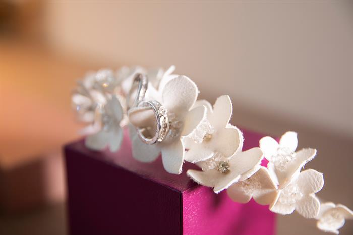 Ngoài ra cô dâu còn chọn đôi bông tai hình bông hoa Fiorever cho sự xuất hiện của mình lúc làm lễ. Ngoài ý nghĩa là một đoá hoa tình yêu vĩnh cửu, điểm đặc biệt của đôi bông tai là kỹ thuật chế tác hiện đại khiến từng cánh hoa có thể rung rinh như nhữnh cánh hoa thật, rất hợp với chủ đề tiệc cưới của cô là “Em là đoá hoa duy nhất”. Đây là một trong những lựa chọn thể hiện sự tinh tế và chú ý đến từng tiểu tiết nhỏ của cô dâu, để mỗi bước lên lễ đường, từ trang sức đến váy cưới đều toát lên vẻ sinh động, sang trọng và quyến rũ.