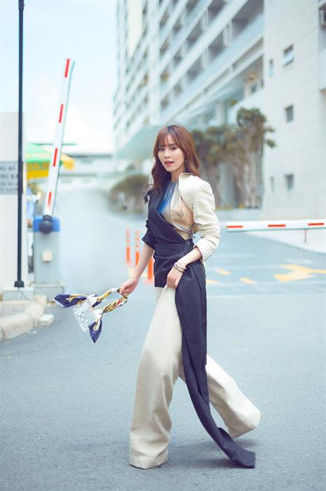 Nếu là cô nàng yêu thích màu sắc và muốn mình trở nên thật nổi bật trong mắt đối phương, cách tuyệt vời nhất đó chính là trưng dụng nguyên cây vàng. Tuy nhiên, với độ chói chang tự nhiên của tông màu này mà bạn chẳng cần phải tốn nhiều công mix match hay phối với đủ món phụ kiện cầu kì. Thay vào đó, chỉ cần bạn kết hợp một set đồ vàng choé đi cùng các phụ kiện mang gam màu cơ bản như đen, trắng là đã có cho mình một set đồ street style ấn tượng. Áp dụng tip này, Ninh Dương Lan Ngọc chọn áo crop-top và kính mắt màu đen sur tone. Nhấn nhá một chút với layout makeup sắc sảo một chút thôi là “ngọc nữ” đã xinh hết phần người ta rồi.