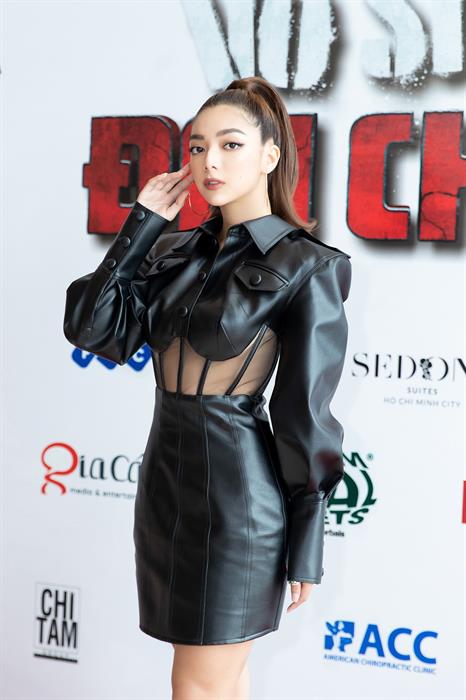 Lần đầu cái tên Katleen được nhắc đến trên thảm đỏ chính là họp báo phim “Võ sinh đại chiến”. Cô nàng xuất hiện với hình ảnh vô cùng cá tính, gợi cảm với chiếc váy da đen nhám ôm sát. Phần eo trở thành điểm nhấn “đinh” với thiết kế cut-out mô phỏng chiếc corset. Để tổng thể hoàn hảo hơn không thể thiếu layout trang điểm với tone nâu và kiểu tóc cột cao.