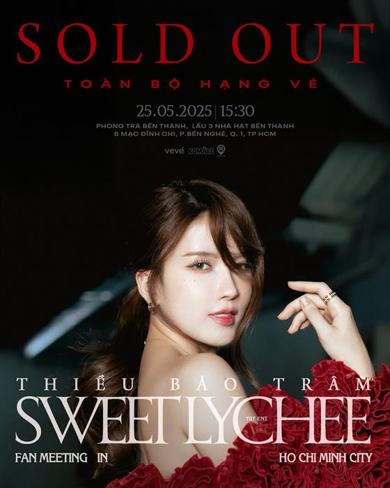 Toàn bộ vé của sự kiện nhanh chóng bán hết trong đêm mở bán, minh chứng cho sự ủng hộ và quan tâm của người hâm mộ dành cho fan meeting đầu tiên trong sự nghiệp của Thiều Bảo Trâm. Fan meeting “Sweet Lychee” sẽ diễn ra vào lúc 15h30 ngày 25/5 tới đây, với những màn trình diễn chỉn chu và hoạt động tương tác thú vị mà Thiều Bảo Trâm tâm huyết chuẩn bị để tạo nên nhiều kỷ niệm đẹp cùng khán giả của mình.