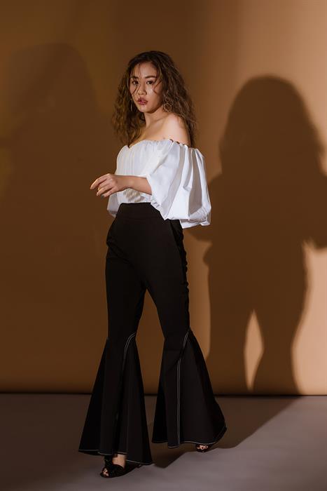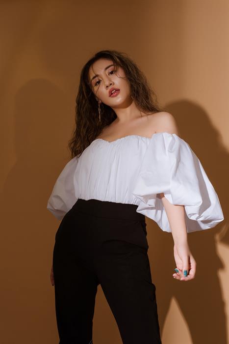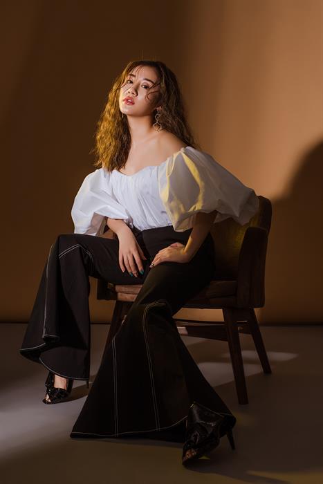 Khoác lên mình mốt áo tay bồng kết hợp quần ống loe và cả mẫu đầm phá cách, Văn Mai Hương còn tự tin khoe vai trần quyến rũ trong mọi shoot hình. Ngoài trang phục, Văn Mai Hương còn tôn nhan sắc cá tính với kiểu tóc rối và trang điểm nhẹ nhàng.