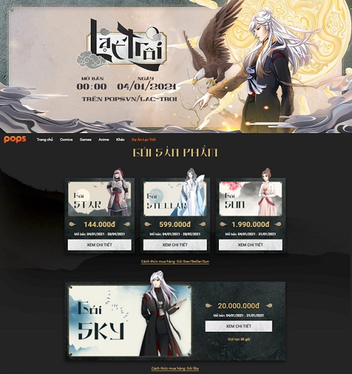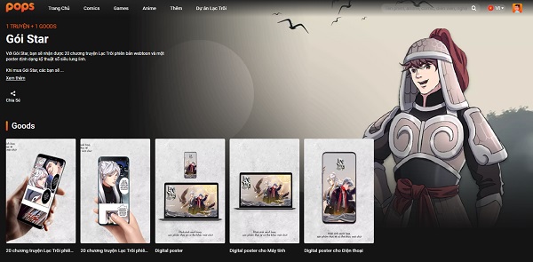 POPS và M-TP Entertainment đã chính thức ra mắt truyện tranh Lạc Trôi, viết tiếp câu chuyện của vị Vương tử trong MV cùng tên cực kì nổi tiếngcủa Nghệ Sĩ Sơn Tùng M-TP. Để thưởng thức bộ truyện, fan có thể lựa chọn một trong ba gói đọc (Star, Stellar, Sun) hoặc gói sản phẩm đặc biệt (Sky) tương ứng với nhiều mức giá khác nhau, thấp nhất từ 144.000 đồng.