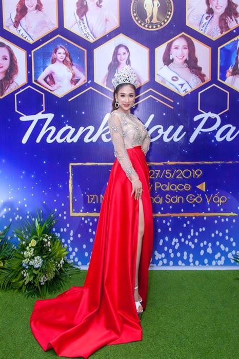 Tintuc - Á hậu Hoàng Thiên Ngân là một trong những người đẹp góp mặt tại đêm tiệc tri ân của Hoa hậu Sắc đẹp toàn cầu châu Á 2019.