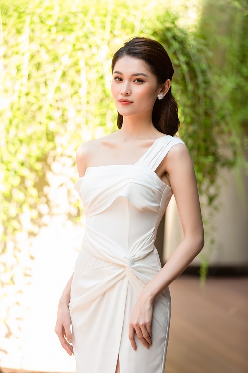 Thùy Dung khoe nhan sắc cuốn hút với trang phục dạ hội của NTK Nguyễn Hà Nhật Huy. Sắc trắng thanh lịch cũng góp phần tôn lên làn da của Thùy Dung.