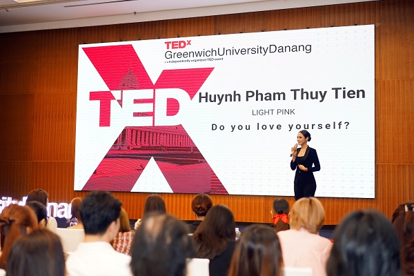Tintuc - Á hậu Thủy Tiên trở thành diễn giả đặc biệt của TEDx Greenwich University Danang 2022, cô chia sẻ về hành trình “lột xác” của bản thân từ cô gái nặng 90kg đến Á hậu Hoàn vũ Việt Nam. Qua đó, Thủy Tiên học được cách đúng để yêu bản thân.