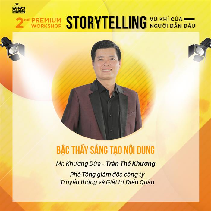 Kể từ thành công của buổi workshop đầu tiên với chủ đề “From Zero to Hero” bằng những chia sẻ chân thành và đầy thiết thực của hai Youtuber nổi tiếng hàng đầu hiện nay là Color Man và Khương Dừa thu hút hơn 300 khán giả đến tham dự. Điền Quân Network tiếp tục tổ chức buổi workshop thứ 2 với chủ đề “STORYTELLING - Vũ Khí Của Người Dẫn Đầu”.
