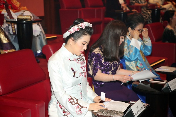 Xuất hiện với tà áo dài thanh thoát, Đinh Hiền Anh thu hút mọi ánh nhìn khi xuất hiện trên hàng ghế giám khảo cuộc thi Hoa hậu Áo dài Việt Nam 2019. Được biết, bộ trang phục mang tinh thần dân tộc này được NTK Thủy Nguyễn may dành riêng cho chị trong sự kiện đặc biệt này.
